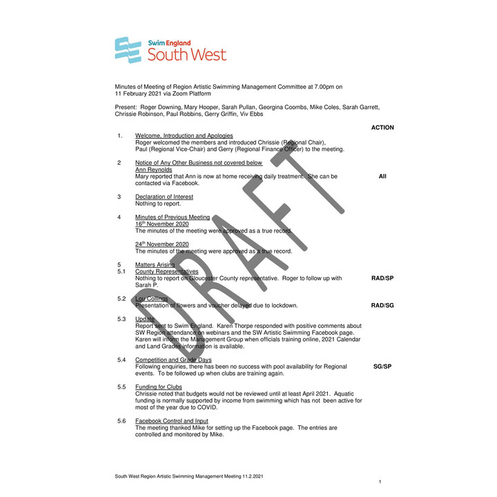 Artistic Swimming Committee Meeting Minutes -11.02.2021 Draft Artistic Swimming Committee Meeting Minutes -11.02.2021 Draft