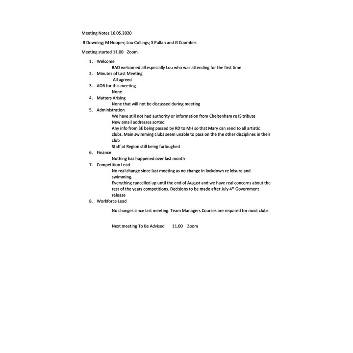 Artistic Swimming Committee Meeting Notes - 16.05.20 Artistic Swimming Committee Meeting Notes - 16.05.20