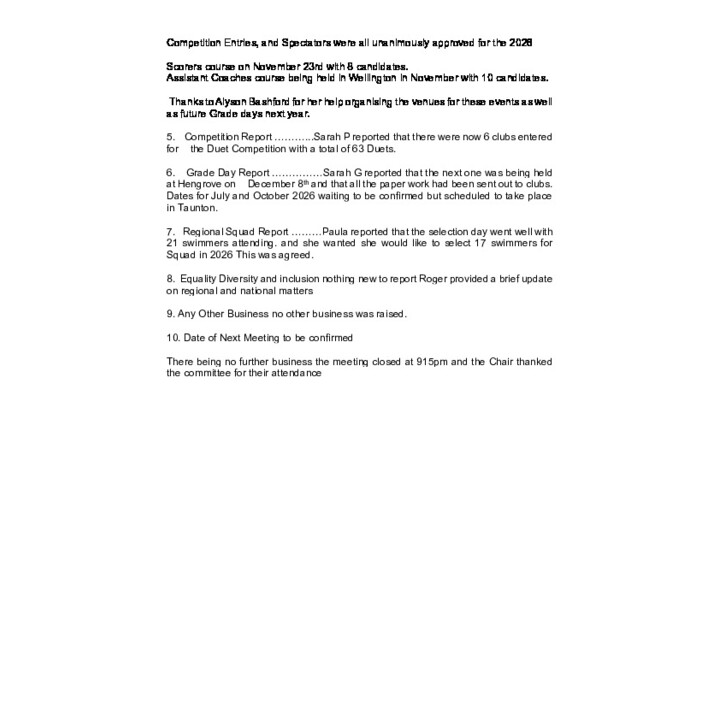 Artistic Swimming Meeting of Clubs Notes- 27.11.21- Artistic Swimming Committee Meeting Minutes - 11.10.2021