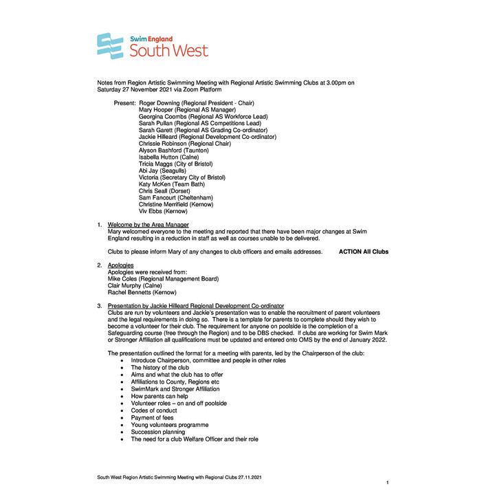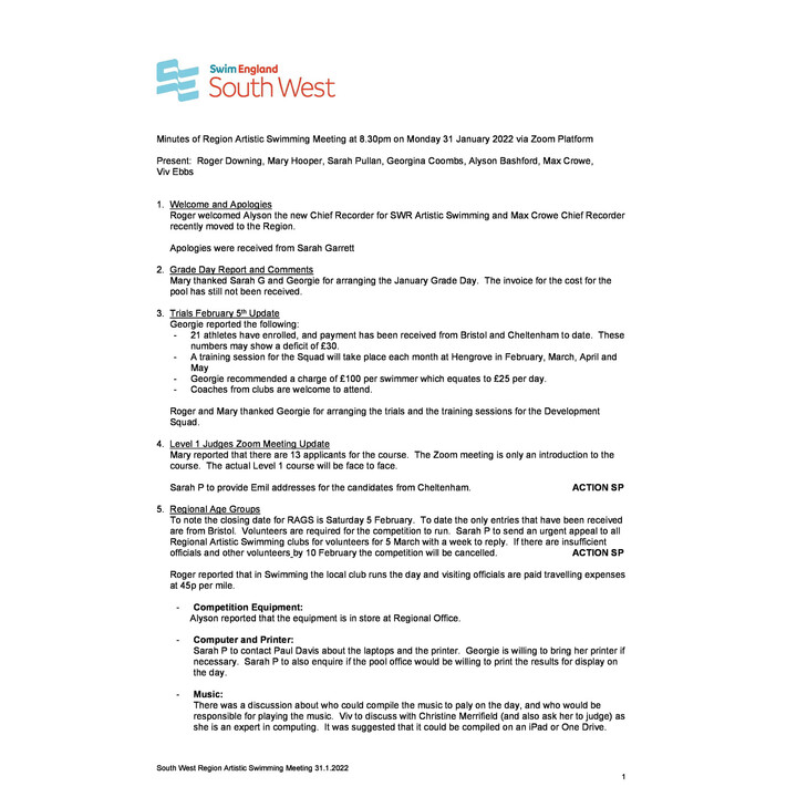 Artistic Swimming Meeting Minutes 31.01.2022 Artistic Swimming Meeting Minutes 31.01.2022