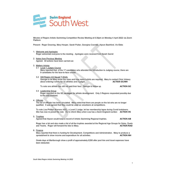 Artistic Swimming Meeting Minutes 04.04.2022 Artistic Swimming Meeting Minutes 04.04.2022