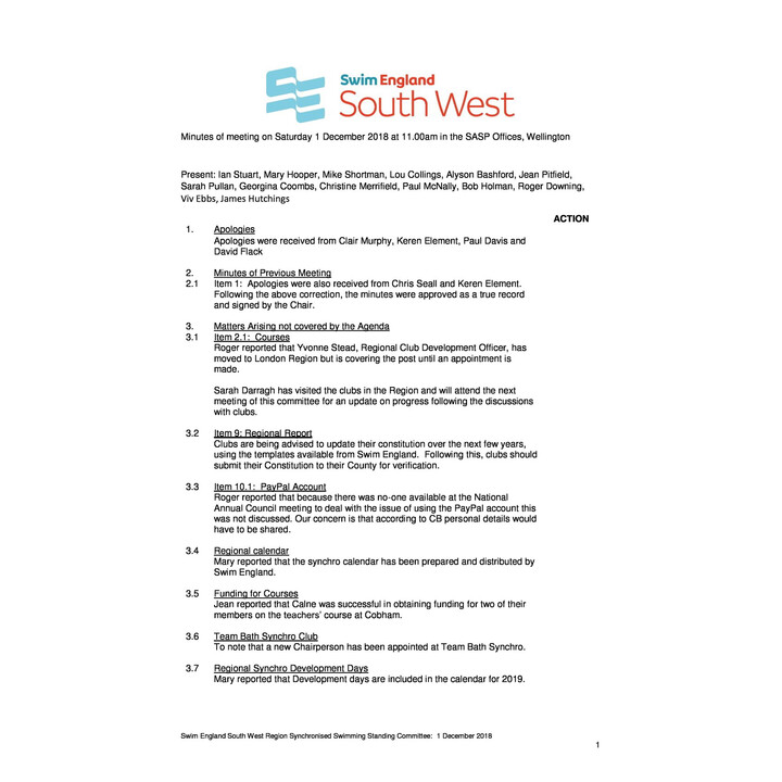 Synchro Minutes December 2018 Synchro Minutes December 2018