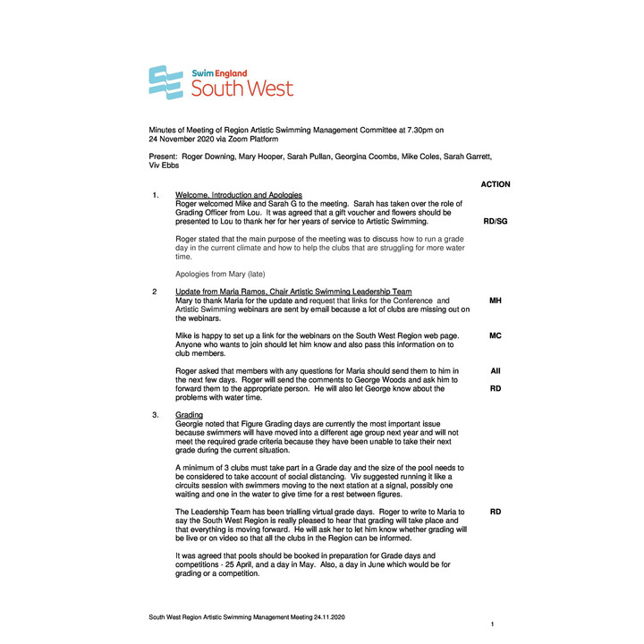 Artistic Swimming Committee Meeting Minutes - 24.11.20 Artistic Swimming Committee Meeting Minutes - 24.11.20