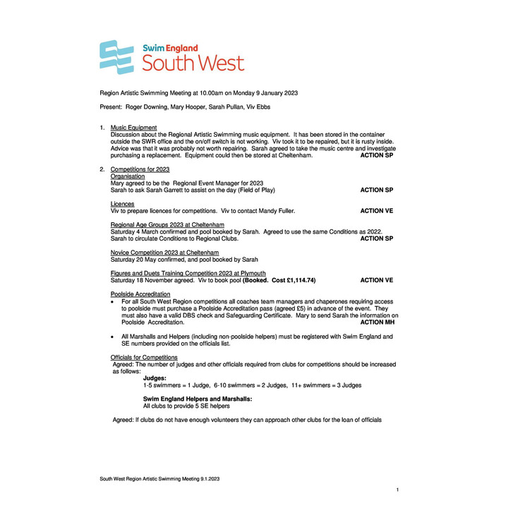 SE SWR Artistic Swimming Meeting Minutes 13.01.2025 SE SWR Artistic Swimming Meeting Minutes 13.01.2025