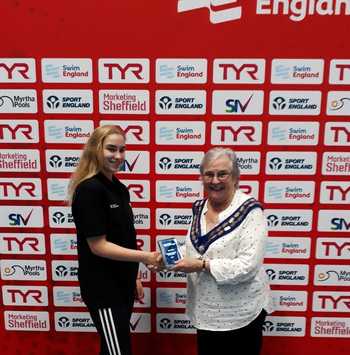 Lily Thorpe photographed with Liz Sykes Swim England President 2018-19